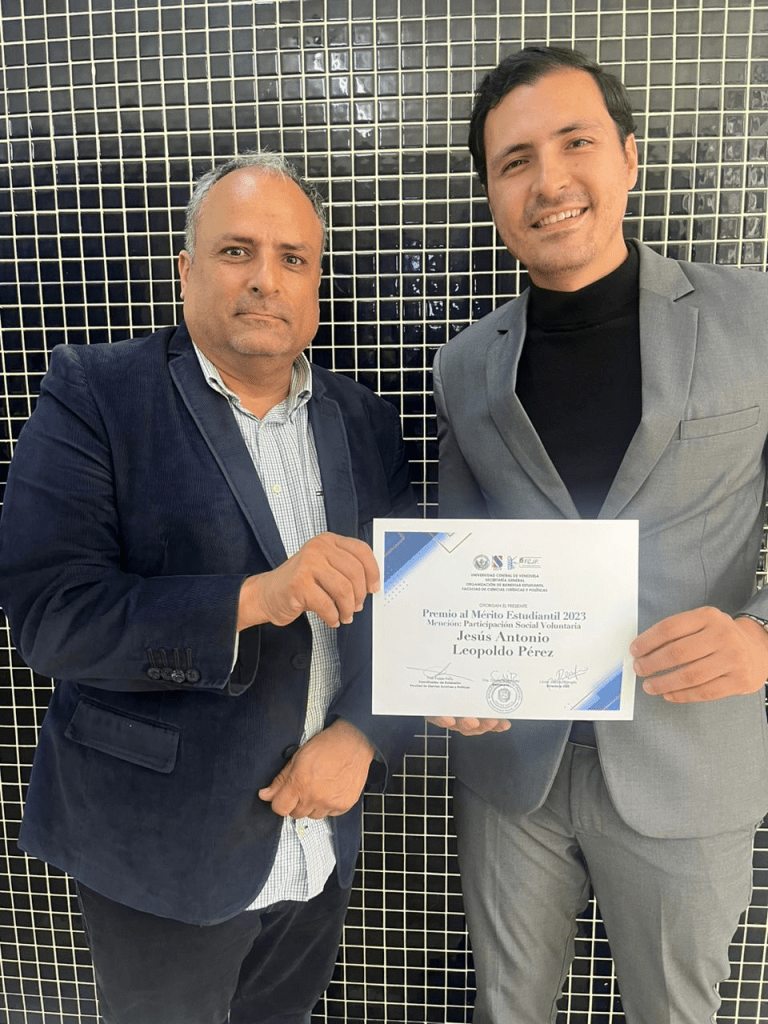 El Q:. H:. Jesús Antonio Leopoldo Pérez, fue galardonado por la Universidad Central de Venezuela, UCV. Secretaria General, Organización de Bienestar Estudiantil, Facultad de Ciencias Jurídicas y Políticas, con el Premio al Mérito Estudiantil mención Participación Social Voluntaria. El premio fue entregado el 24 de noviembre de 2023. En la foto esta con su Padre, también QH, ambos de la Respetable Logia Simbólica REAA, Francisco Salías N° 208, al Or de San Antonio de Los Altos, Estado Miranda Venezuela