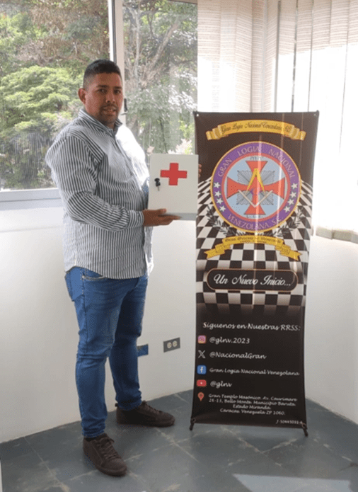 El QH Fabricio Parra, Compañero de la Respetable Logia Azul, Arca de la Alianza 224 N° 3, al Or de Caracas, hizo una donación a la Gran Logia Nacional Venezolana -GLNV- de un Botequín de Primeros Auxilios, equipado con los medicamentos básicos, que será de suma utilidad para los QQHH, cuñadas, sobrinos y amigos que estén en las instalaciones de la Gran Logia. De esta manera seguimos adecuando nuestro Gran Templo.