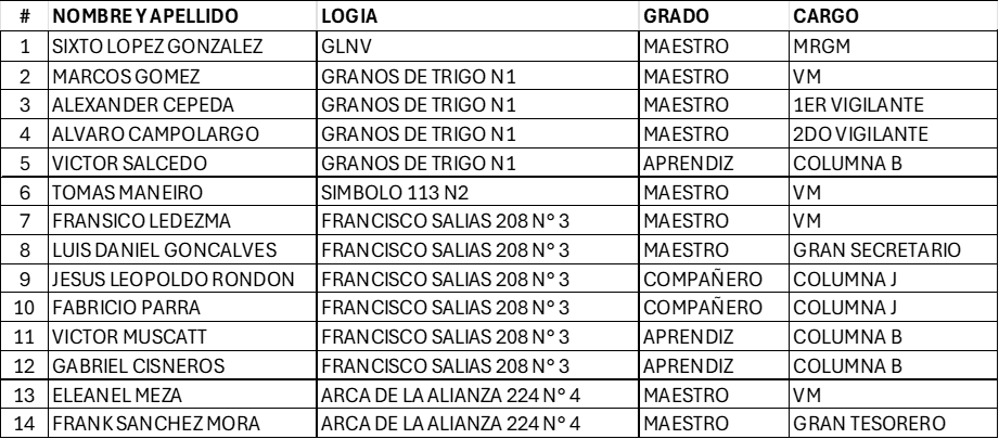 Todo ello con motivo de la visita que se realizó la GLNV el miércoles 16 de octubre 2024 a ese Oriente, la cual marcó un hito histórico en la masonería nacional, cuya Gran Comisión estuvo presidida por el MRGM Sixto López González.