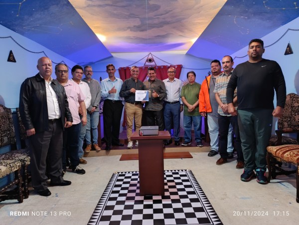 Para agradecer al IPH Wilfredo Díaz, por dar a todos los asistentes estas interesantes luces sobre la Cábala, tema por lo demás de mucha utilidad para los masones, la GLNV a través de su MRGM Sixto López González le entregó un Certificado el cual recibió con mucha emoción.