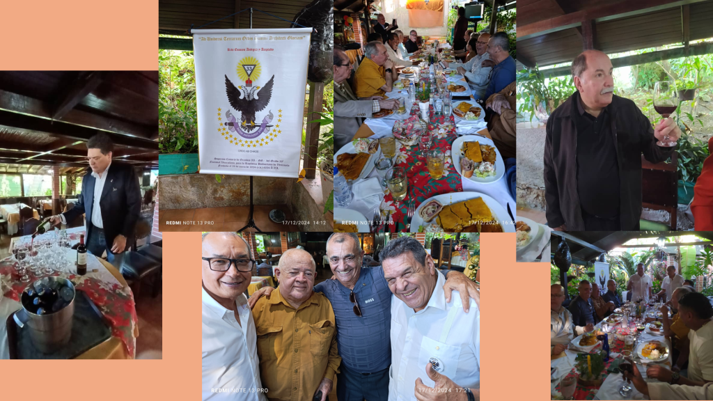 El Supremo Consejo Confederado de grandes inspectores del grado 33 REAA Nacional Venezolano, bajo la dirección del Muy Poderoso Soberano Gran Comendador -MPSGC- el IPH Eliecer Peña Granda y acompañado por el Soberano Lugarteniente Gran Comendador, IPH Sixto López González, recibieron la tarde del 17 de diciembre 2024 a los invitados que asistieron a la celebración de la navidad en el prestigioso Restaurante Tarzilandia en Altamira, donde se compartió unos momentos de mucha alegría en unión fraternal, para degustar un delicioso plato navideño, no sin antes realizar tres brindis dirigidos por el MPSGM Eliecer Peña Granda, los cuales estuvieron a cargo, el primer brindis, por el IPH Ricardo Meneses el Muy Respetable Gran Maestro -MRGM- de la Gran Logia del Nuevo York Central, el segundo brindis por el MPSGC del Supremo Consejo de grandes inspectores del grado 33 REAA para la República Bolivariana de Venezuela IPH José Ortega Matamoros y el tercer brindis a cargo del Muy Respetable Gran Maestro de la Gran Logia Nacional Venezolana -GLNV- el IPH Sixto López González, para luego dar el derecho de masticación.