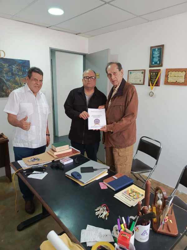 Hoy el representante de la Gran Comisión Jurídica el QH Jesús Leopoldo le hizo entrega del proyecto de reforma de la Constitución de la Gran Logia Nacional Venezolana -GLNV- al QH Carlos Alarico Gómez para que le hiciera las correcciones de estilo y ortografías pertinentes. De esta manera se cumplen con los plazos establecidos para seguir en el proceso de su aprobación. Estuvo presente como testigo de la entrega el MRGM Sixto López González, quien agradeció ala CCJ por su apoyo y diligencia en este delicado proceso y al QH Alarico por su colaboración.