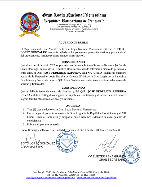 MANIFIESTO DE LA GRAN LOGIA NACIONAL VENEZOLANA FIRMADO…