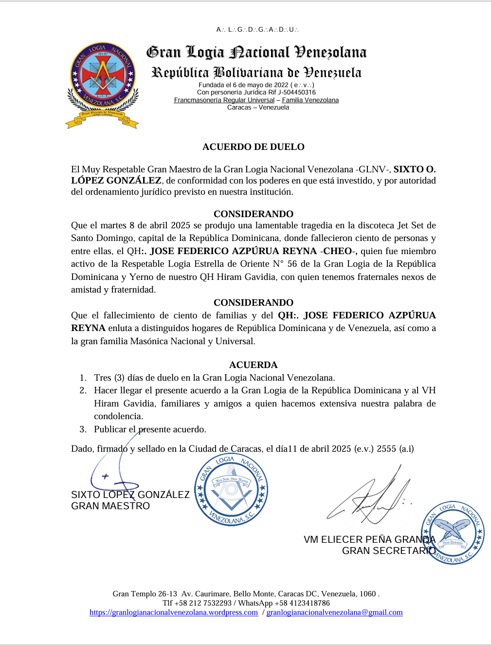 Acuerdo de duelo por tragedia en Santo Domingo Comparte esto: Haz clic para compartir en X (Se abre en una ventana nueva) X Haz clic para compartir en Facebook (Se abre en una ventana nueva) Facebook Me gusta Cargando... Relacionado Deja un comentario Cancelar la respuesta Δ