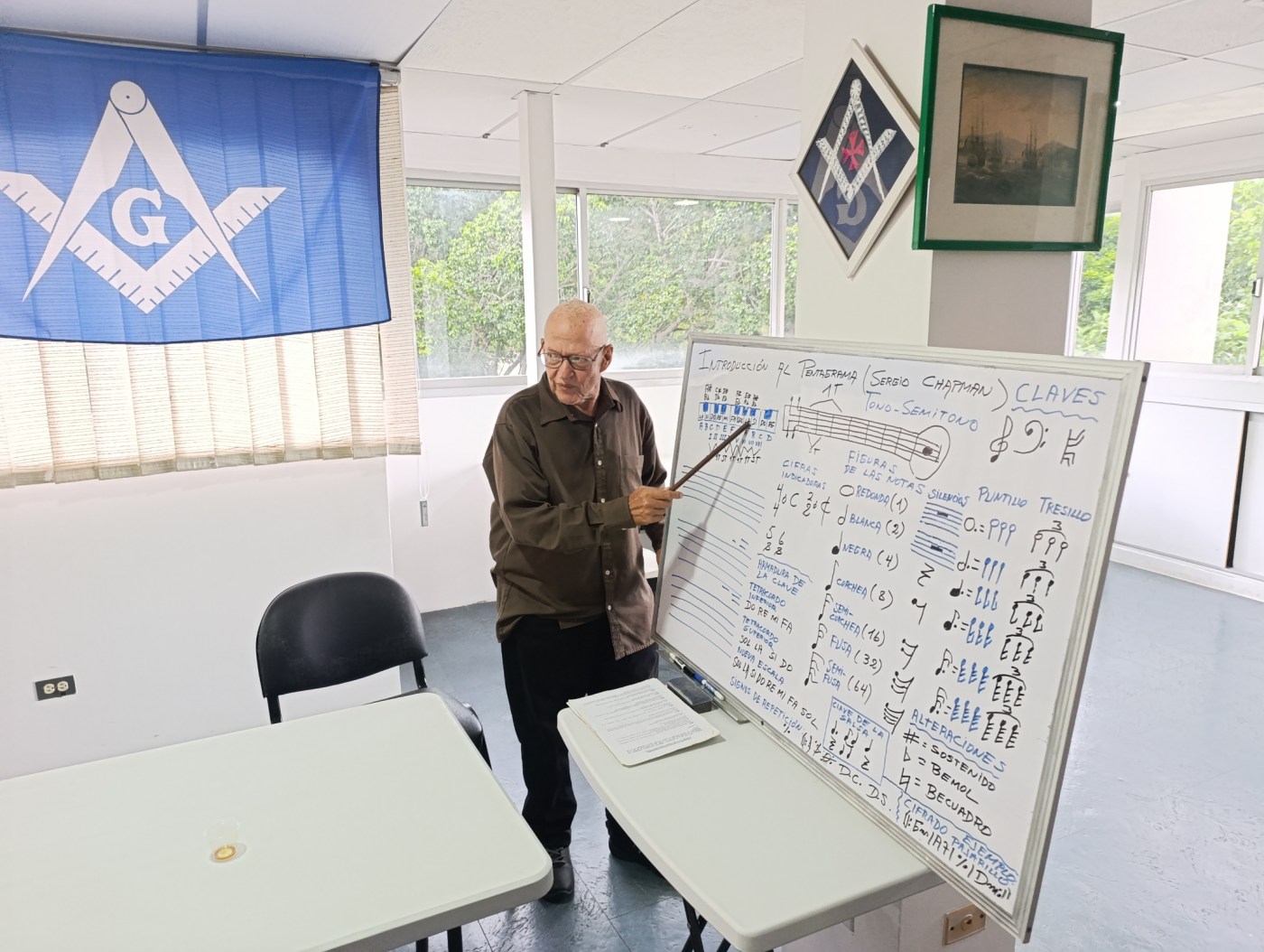 En esta ocasión, la jornada titulada “Introducción al Pentagrama” fue magistralmente conducida por el Q.•.H.•., Licenciado y Profesor de Música Sergio Chapman, quien compartió con los presentes los fundamentos musicales del pentagrama, su simbología armónica y su capacidad de conjugar razón, emoción y espiritualidad. El espacio se transformó en una sinfonía de saberes que evocó el poder de la música como lenguaje universal y herramienta de integración.