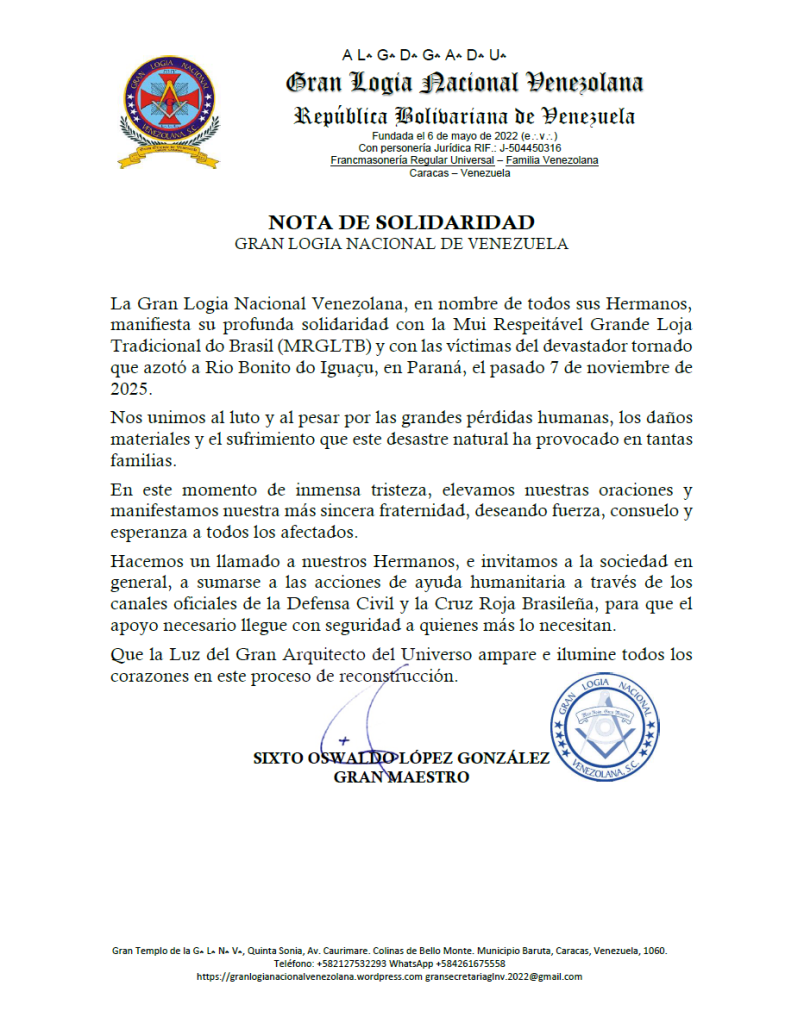 MANIFIESTO DE LA GRAN LOGIA NACIONAL VENEZOLANA FIRMADO…