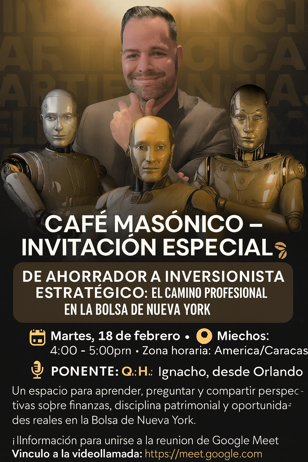 Un grupo de QQ.HH. de distintas Logias y triangulos de nuestra obediencia, junto a invitados especiales, siguió con atención cada una de las explicaciones del expositor. El QH. Nacho presentó de manera clara los conceptos esenciales para iniciarse en el mundo de las inversiones, lo que generó una dinámica ronda de preguntas que fueron respondidas con precisión y amplitud. Su intervención, durante una hora, permitió tender un puente de conocimiento desde Orlando hasta Caracas, fortaleciendo así la vocación formativa de nuestra institución.