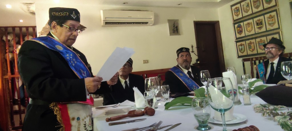 Luego, de las palabras del MVGM y de otros QQHH, se dieron los brindis de rigor para finalmente compartir unos momentos de mucha fraternidad, sin faltar con el lema de la GLNV de «UNION Y CARIDAD».