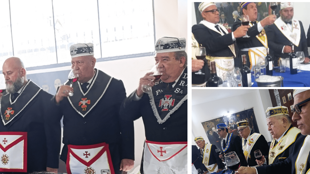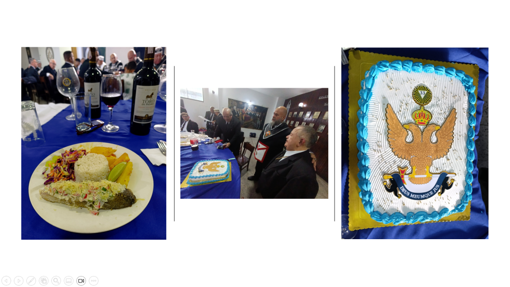 Posteriormente, y como parte del ambiente fraternal que caracterizó la jornada, se realizaron siete brindis, se entonó con alegría el cumpleaños feliz dedicado a la Logia, y todos los presentes compartieron una rica torta, gesto que selló la celebración con un toque de hermandad, gratitud y buen ánimo.
