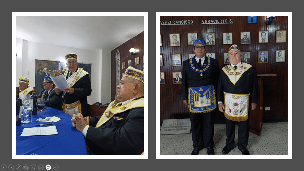 Antes de retirarnos, el Venerable Maestro Gabriel Sánchez, acompañado del Primer Vigilante José Ariza, realizó en nombre de la Logia un acto de filantropía, destacando el lema que identifica a la GLNV: “Unión y Caridad”. El gesto fue dirigido a la Sra. Eucaris y a su hijo Rafael, quienes de manera constante apoyan a la GLNV en el mantenimiento de sus instalaciones. Este momento, sencillo pero profundamente significativo, reafirmó el espíritu solidario que caracteriza a la Logia desde su nacimiento.